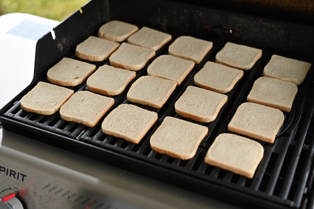 Die gesamte Grillfläche wird mit Toast belegt, der Grill läuft auf Vollgas – und das Bräunungsbild liefert ein objektives Ergebnis.